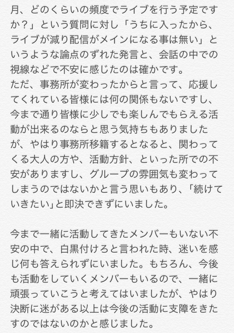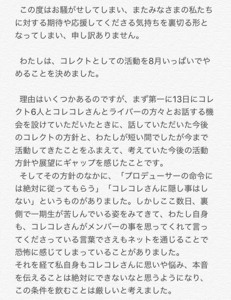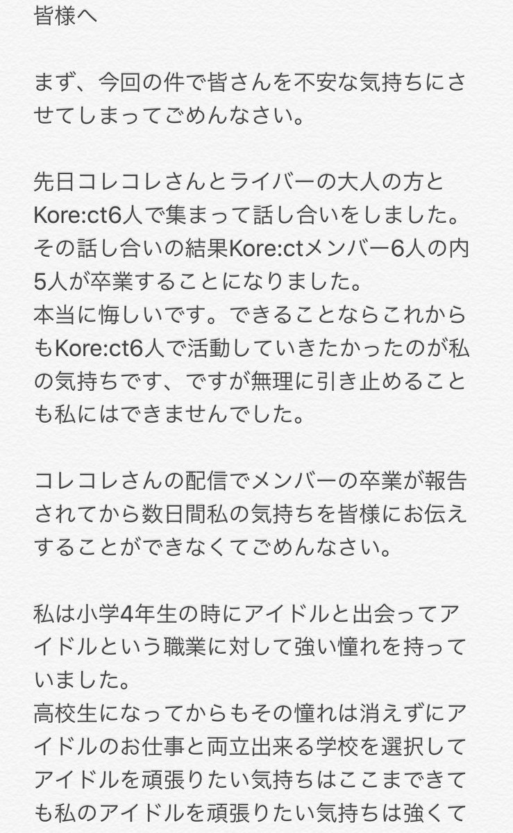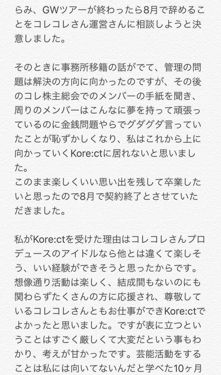 - コレコレ自身が所属している「ライバー」にグループを移籍しようとしたところ、「ライバーはやばい事務所」と運営がアイドルに吹き込んでいた。