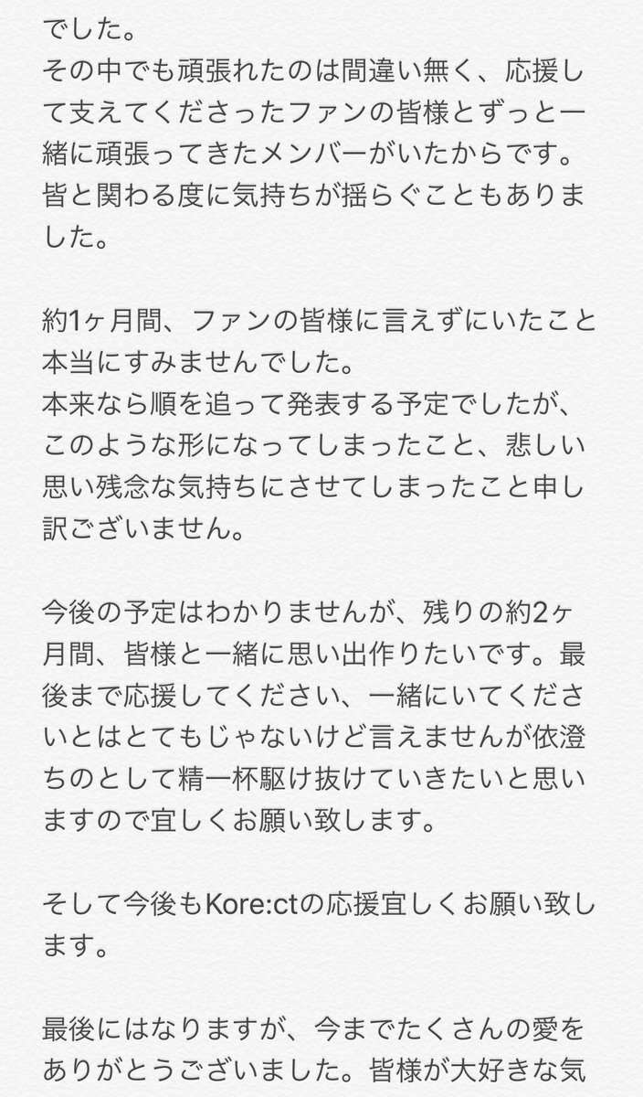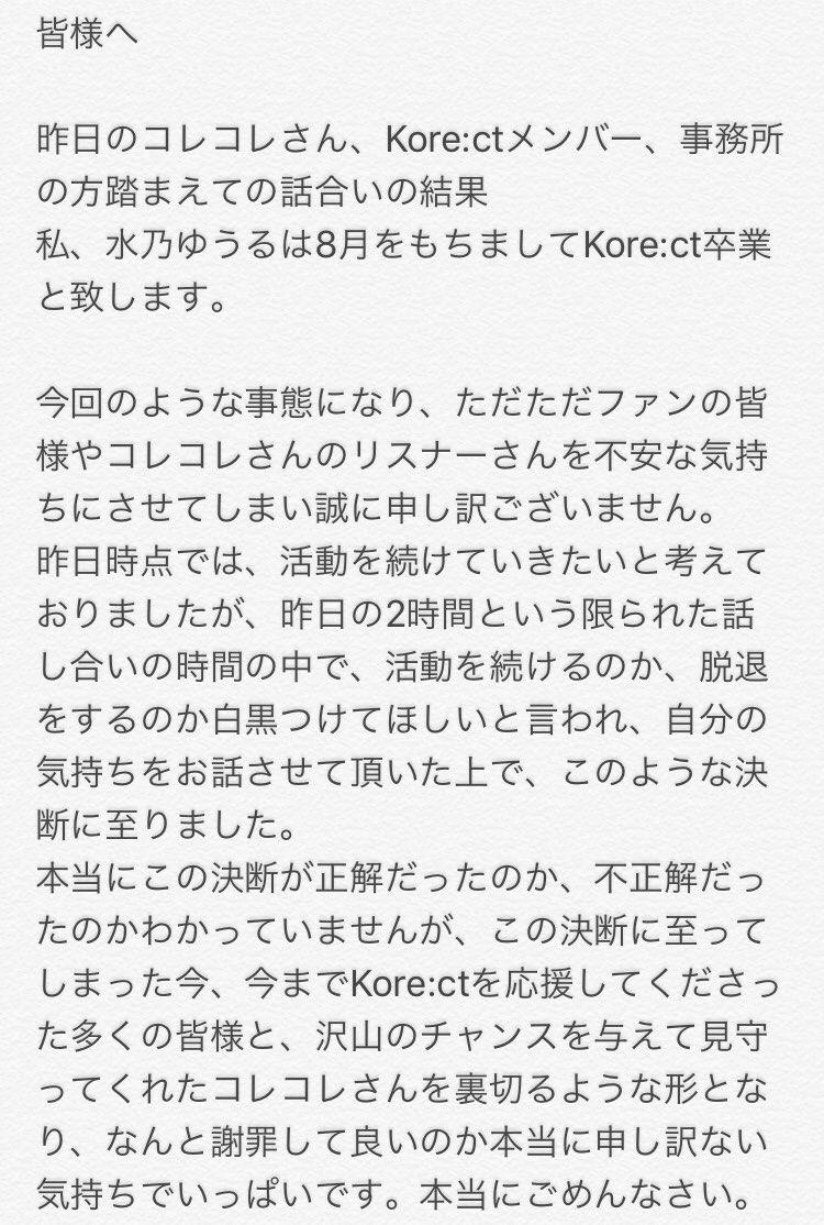 コレコレさんプロデュースのネット発アイドル「Kore:ct(コレクト)」の解散が、2019年6月に決定しました。